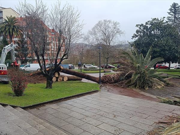Esta mañana están procediendo a la retirada de varias palmeras del parque de abajo, debido a que estaban afectadas por la enfermedad del picudo rojo.