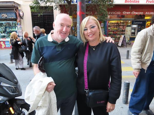 La popular Belén Esteban saluda a nuestra villa de Grado, justo cuándo se disponía a entrar al programa de TVE " La Revuelta"